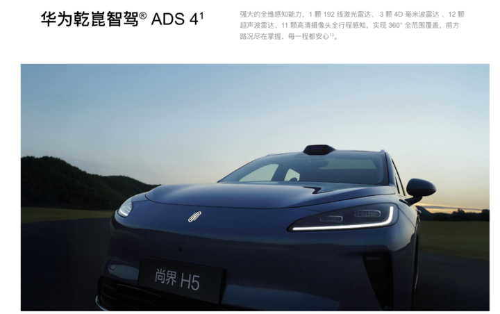 只看智能化配置,尚界 H5 相当能打,其 MAX 版本搭载了 192 的激光雷达以及 3 颗 4D 毫米波雷达,搭载华为乾崑智驾 ADS 4 后,具备车位到车位的全场景辅助驾驶能力和泊车功能,与三四十万的问界 M8 等高端车型并无二致。